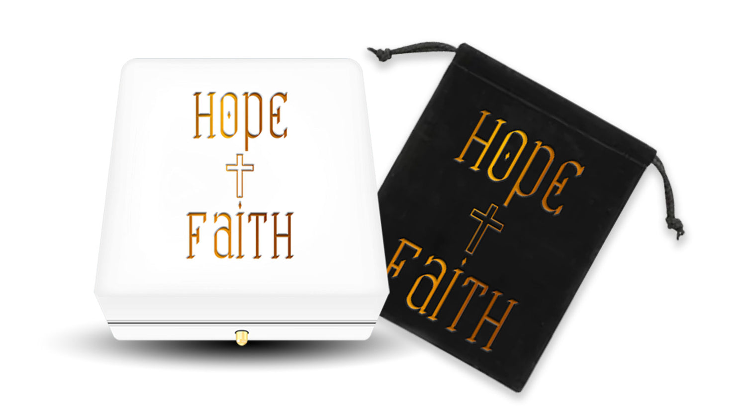 Behind the exquisite quality and crafsmanship of our Hope and Faith pieces, we also include a free white leather case together with a velvet pouch for added protection.