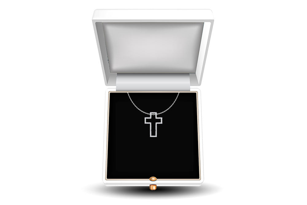 Encrusted with shimmering round brilliant cut diamonds that radiate brilliance and sophistication. Each diamond is carefully selected for its exceptional clarity and sparkle, ensuring that this necklace truly stands out from the rest. The cross is delicately crafted from high-quality precious metals of your choice adding a touch of opulence to the design.